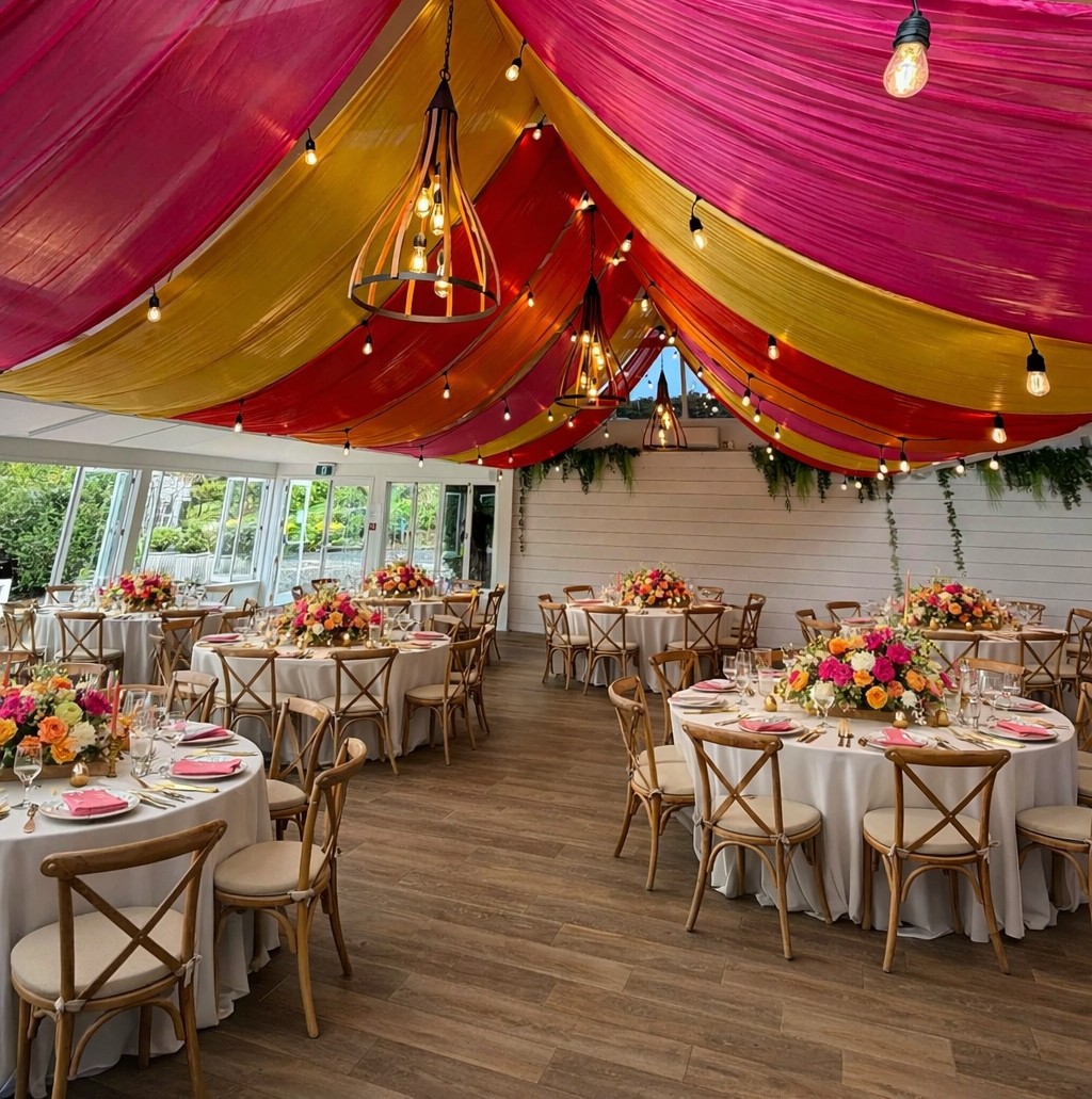 Perfect for weddings, proposals, and special celebrations, our Auckland ceiling draping services enhance the natural beauty of your venue while creating a warm and intimate ambience for you and your guests. Whether you’re planning a classic, modern, or luxury-themed event, ceiling drapes are the perfect way to transform your space and create a memorable experience.