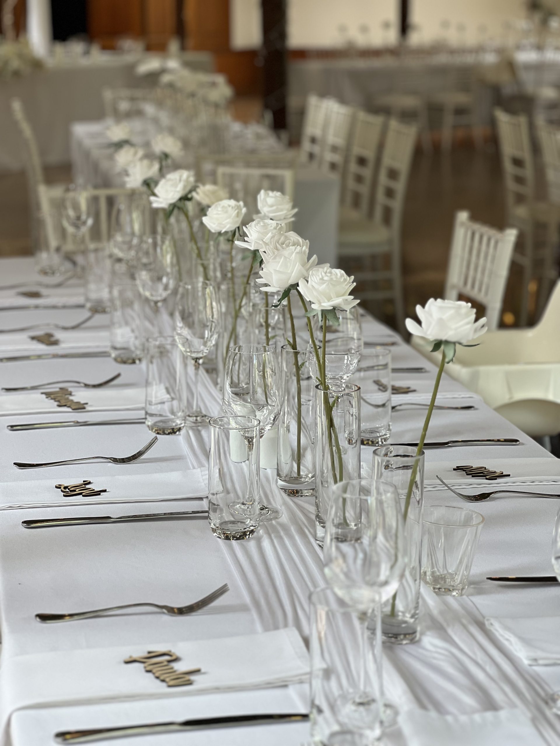 • 10-14 Small Glass Vases with 1-2 roses Inside